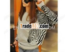 Fashion Women New Korean Zebra Printing Batwing Long Sleeve T-Shirt Top Gray 5858