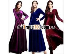 Women's V-Neck Long Sleeve Dress Gorgeous Pleuche Maxi long Dress1. Elegent and Slim fit. 2.2014 new style, factory price.