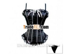 New Womens Sexy Lingerie Lace up Satin Corset Bustier Lingerie G-String Underwear Sleepwear BlackDetails Description: script>